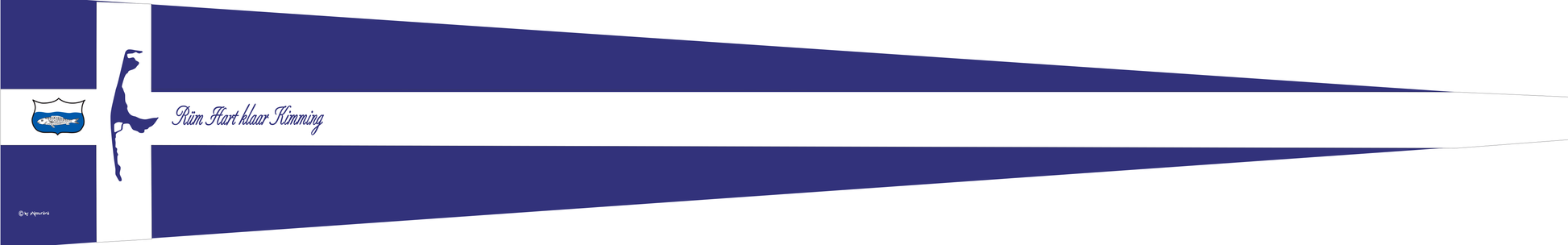 Auf diesem Wimpel dominiert ein dunkelblaues Feld mit weißem Kreuz, in dessen Mitte die Inselkontur von Sylt und der friesische Wahlspruch Rüm Hart klaar Kimming zu sehen sind. Das Motiv knüpft an traditionelle skandinavische Flaggen an und steht für ein weites Herz und einen klaren Horizont, wie es in der Küstenregion seit Generationen verstanden wird.