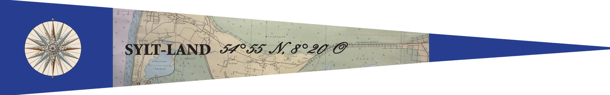 Wimpel Sylt-Land – Seekartenmotiv mit Koordinaten 54°55 N, 8°20 O
